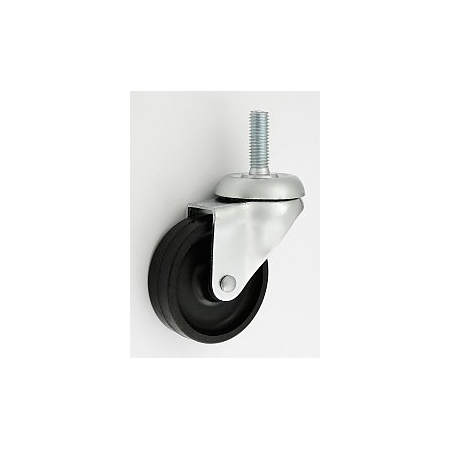 Koła meblowe tworzywowe wykonane wtryskowo z poliamidu PA 6 w kolorze czarnym, posiadają w obudowie trzpień gładki lub gwintowany, który umożliwa montaż w rurce lub specjalnie przygotowanym otworze.