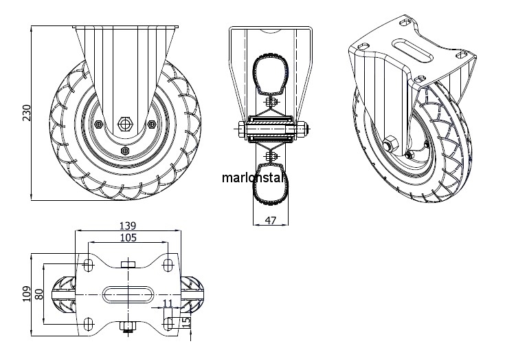 - wysokość zestawu skrętnego : 230 mm