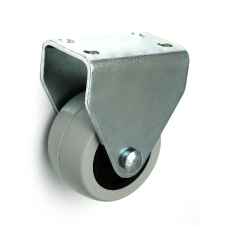 Kółka meblowe tworzywowo-gumowe posiadają tarczę koła wykonaną z poliamidu PA 6 w kolorze czarnym oraz bieżnię gumową. Korpus koła jest jednolity, wykonany wtryskowo. Opona wykonana ze specjalnego tworzywa koloru szarego, które nie brudzi posadzki oraz zapewnia cichą pracę. Obudowa stała z mocowaniem płytkowym umożliwia montaż za pomocą wkrętów.