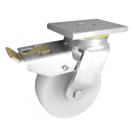 Bardzo mocna, solidna konstrukcja spawana. Koła występujące w tej obudowie osadzone są na tulejce, montowane są z kielichem obudowy koła, kółka za pomocą śruby i nakrętki. Obudowa koła, kółka posiada podstawę mocującą z łożyskiem oporowym wzdłużnym zabezpieczonym uszczelniaczem tworzywowym chroniącym kulki łożyska wypełnione długotrwałym smarem. Widelec obrotowy zawiera drugie łożysko oporowe wzdłużne. Całość połączona jest śrubą z nakrętką, która zabezpieczona jest specjalnym klejem beztlenowym.