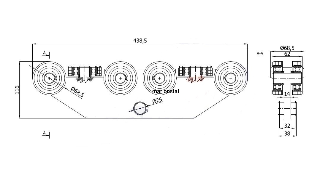 Zastosowanie do różnego typu drzwi przesuwnych, bram, bramek. Pracują w szynie z profilu bramowego 80x80x5.