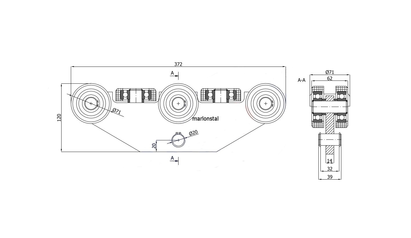 Zastosowanie do różnego typu drzwi przesuwnych, bram, bramek. Pracują w szynie z profilu bramowego 80x80x5.