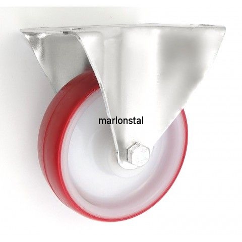 Zestaw kołowy w obudowie stałej składa się z koła poliamidowo - poliuretanowego oraz obudowy wykonanej ze stali nierdzewnej. Zestaw ten montowany jest za pomocą płytki mocującej. Może on być używany m.in. w przemyśle spożywczym.